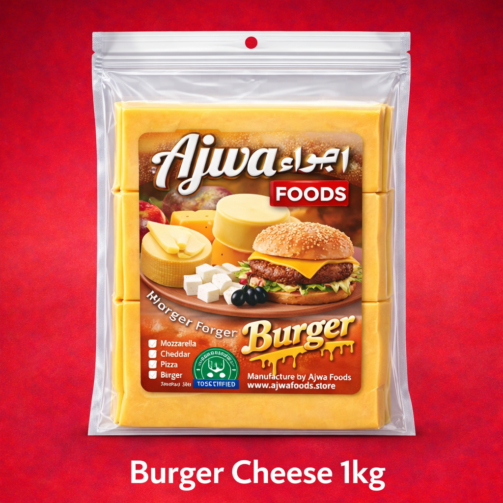 Ajwa Foods Burger Cheese is specially made for perfect melt and flavor balance—giving your burgers a professional, restaurant-style finish every time.