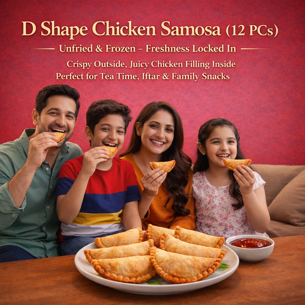 Perfect for tea time, Ramadan iftar, parties, and quick snacks, Ajwa Foods D Shape Chicken Samosas offer a crispy outside and juicy, well-seasoned filling once cooked.